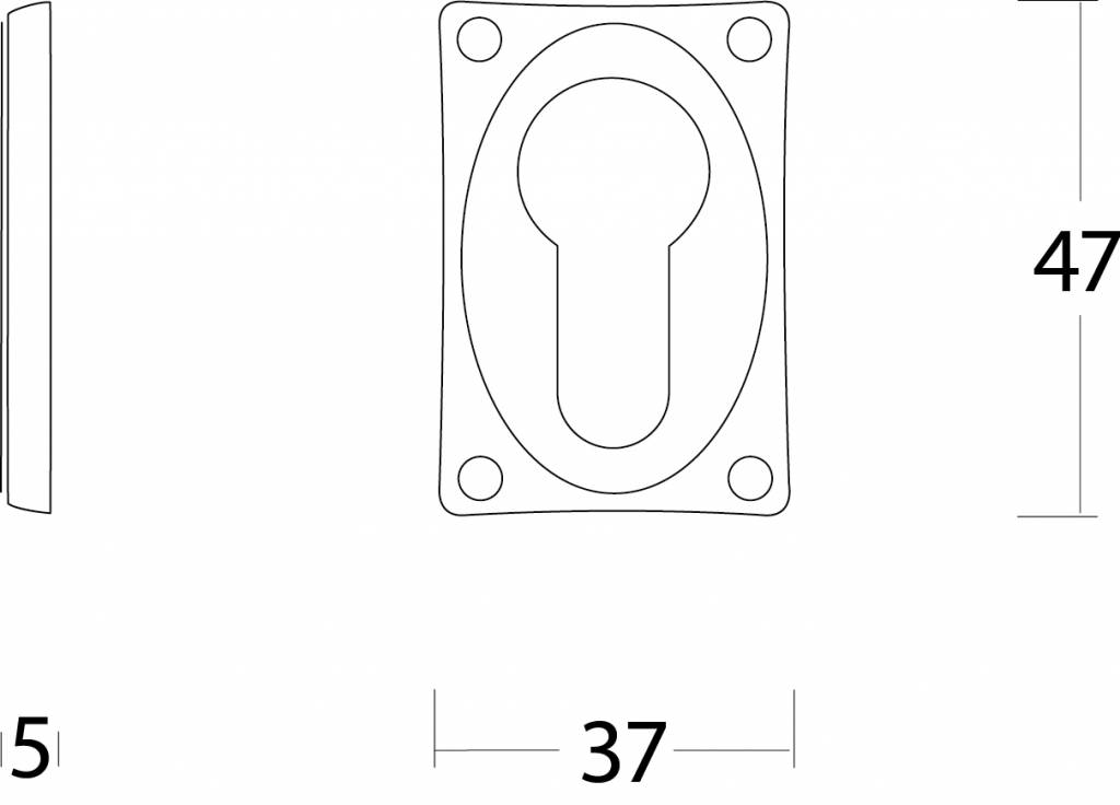 Pair of square profile cylinder hole plates extended matt nickel 47x35 mm - Intersteel
