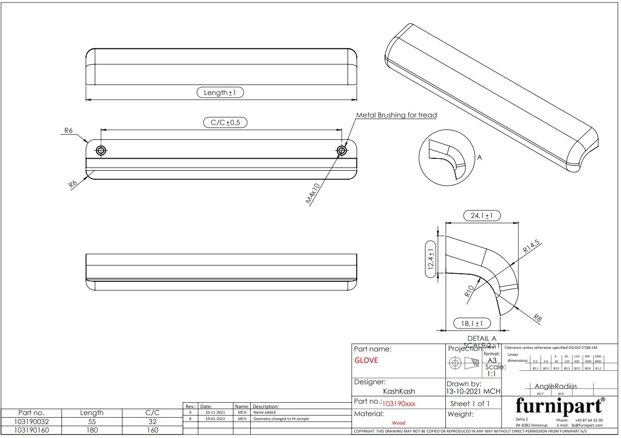 The furniture handle is made of oak and is finished with a strong lacquer at the end. The material in combination with an optimal shape will ensure a perfect grip.