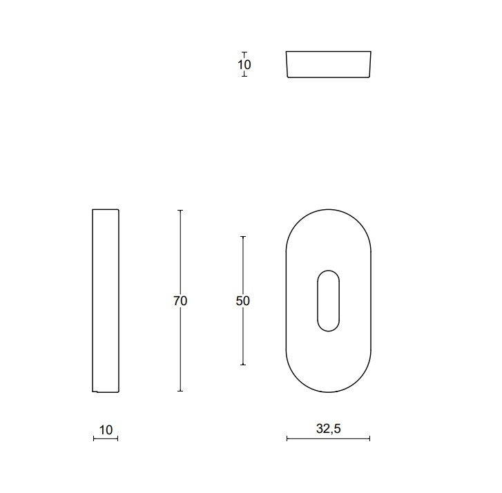 These oval key plates in black are 70x32 mm and have a thickness of 10 mm.