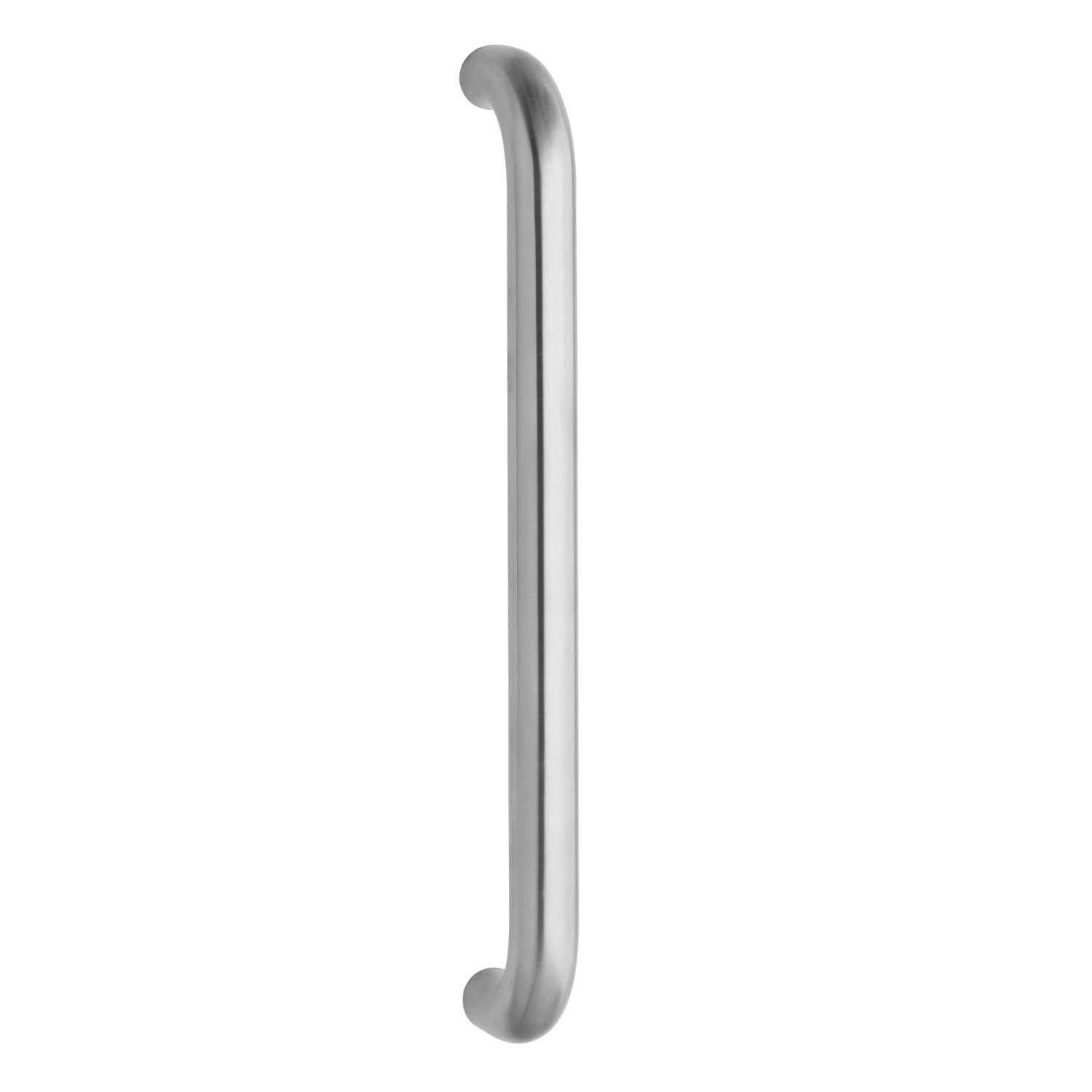 The round U-shaped stainless steel door handles are supplied in pairs, including mounting materials for continuous mounting opposite each other on wooden or glass doors.