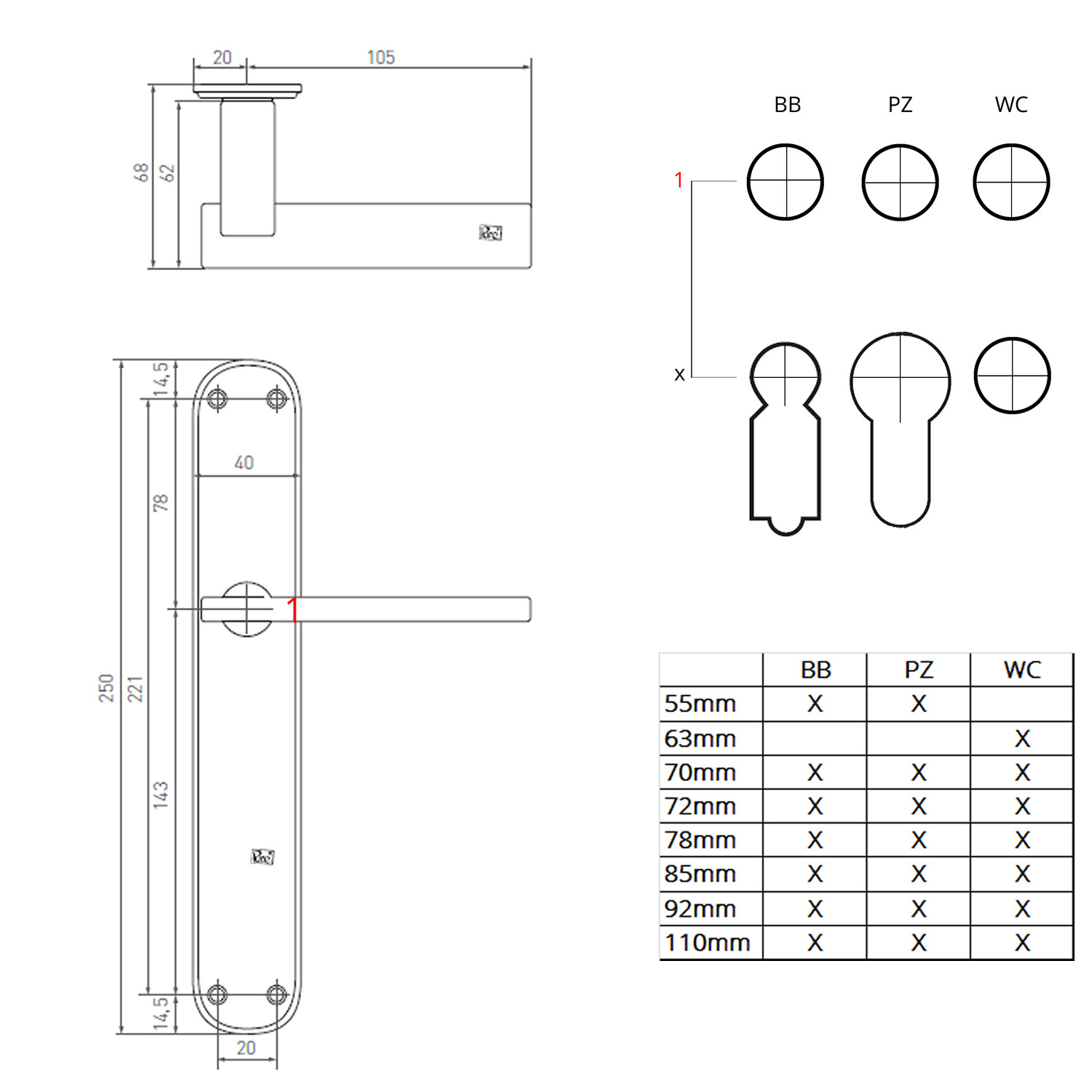 Pair of black door handles PH2017 /P40 aged iron on blind plate