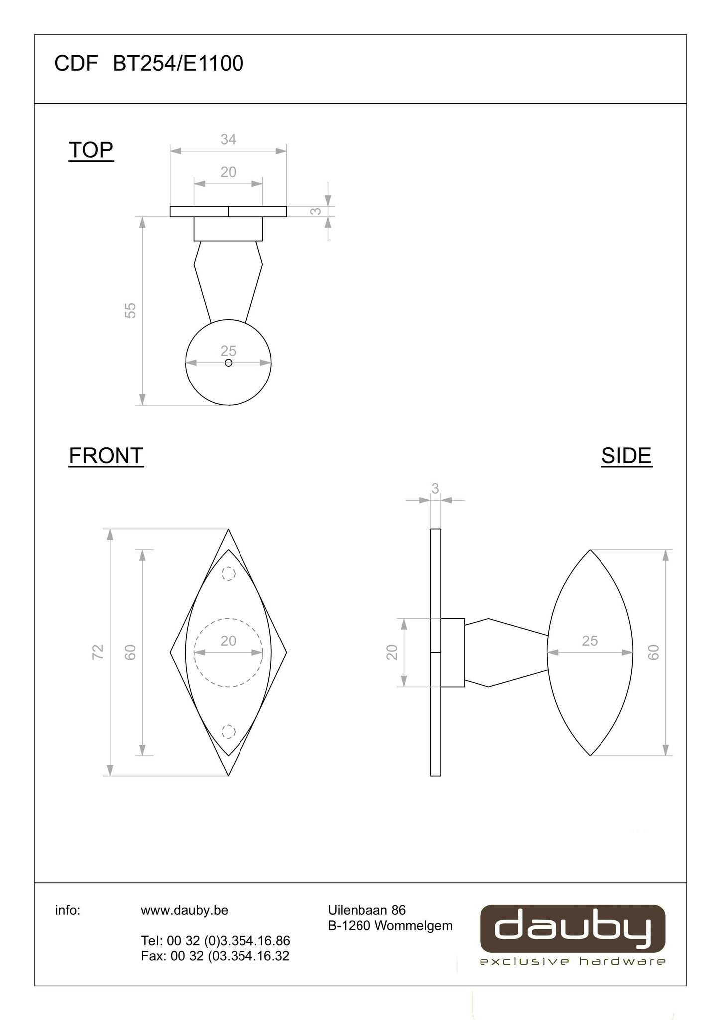 The doorknob BT254 is an olive-shaped rotary knob. You can perfectly combine this door and window knob with the olive-shaped furniture knobs BT284, BT294 and BT254. Everything in the same line for more peace and harmony in your interior. The door knob can also be requested as a fixed knob.