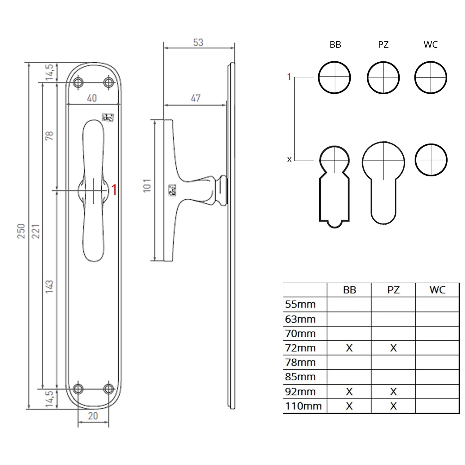 The black long shields from Pure® are available in axle sizes 72mm, 92mm and 110mm or blind, with normal key opening (BB) and cylinder opening (PZ). Above you can select the desired version. On the technical drawing you can see how to best measure the axle size.
