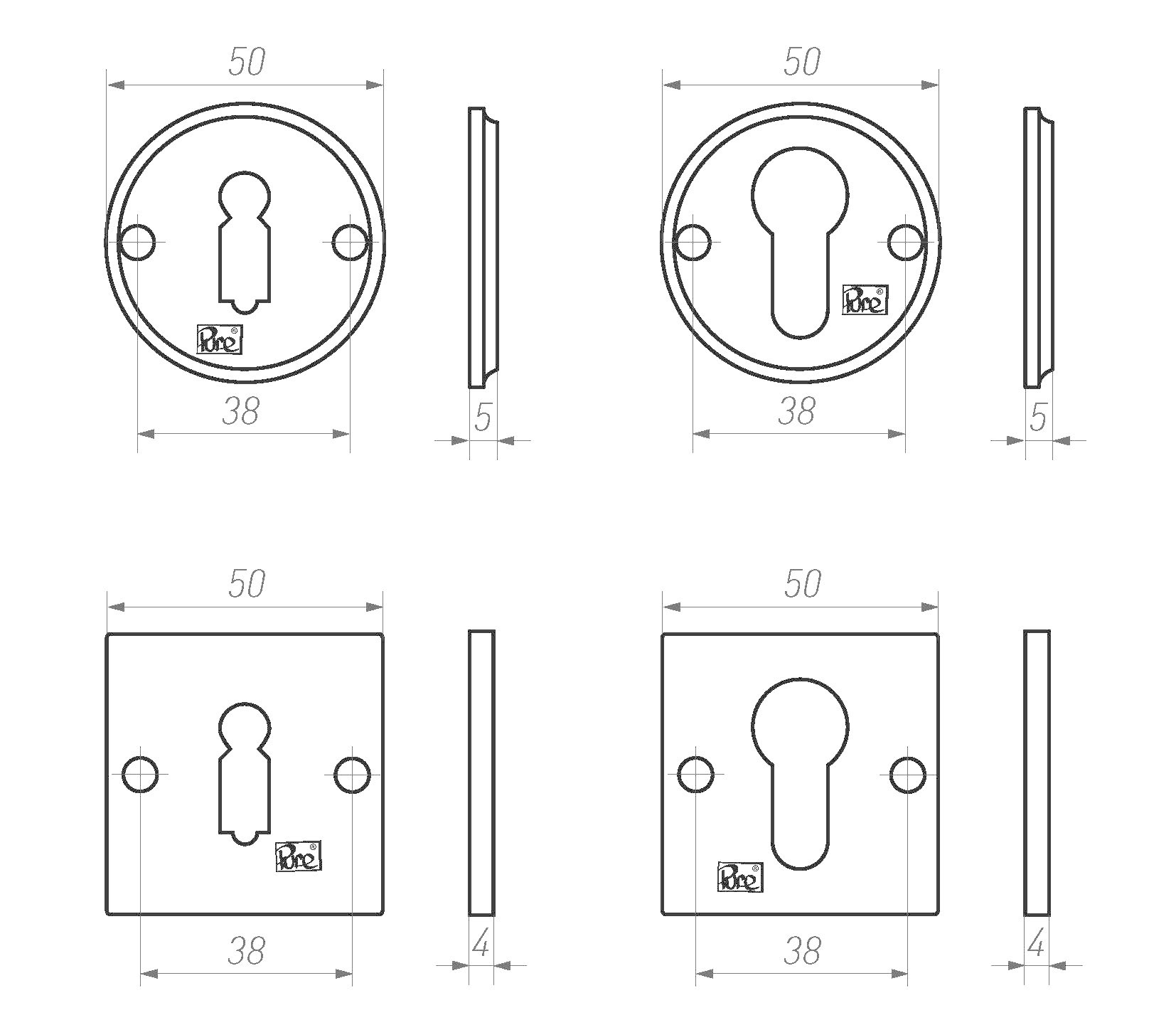 Pure® also provides matching key plates for the door handles. BB key rosettes are for interior doors. PZ key rosettes are provided for cylinder locks.