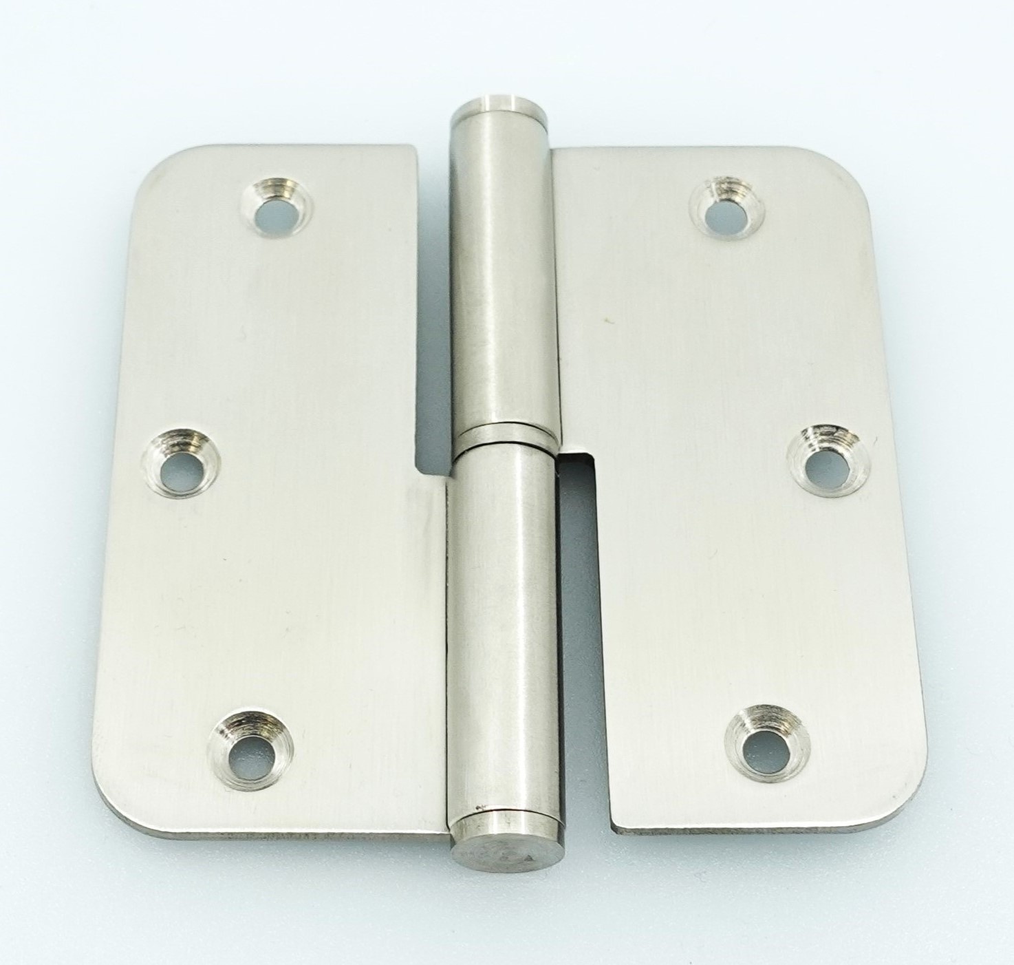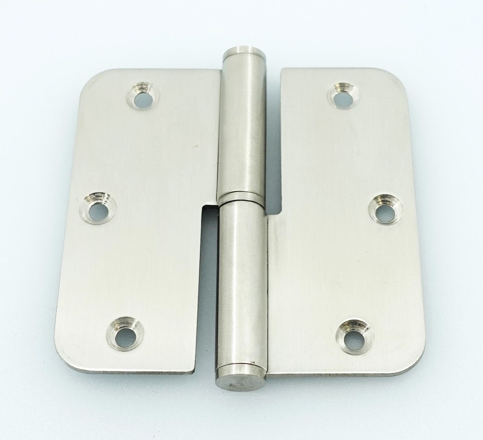 Description Stainless steel Hinge 89x89x2.5mm with rounded corners available in 2 versions: DIN right - Belgian left or DIN left - Belgian right
