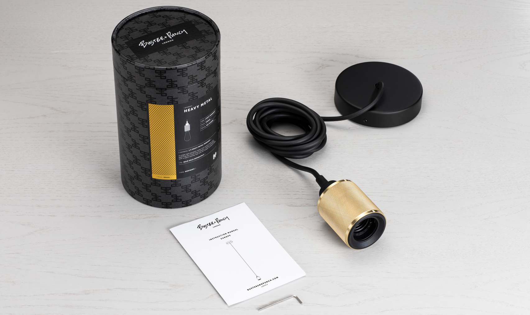 This lamp has an E27 fitting and comes with a matt black rubber cord of 3m and a matt black ceiling cap. The light looks best in combination with one of our LED BUSTER LAMPS.