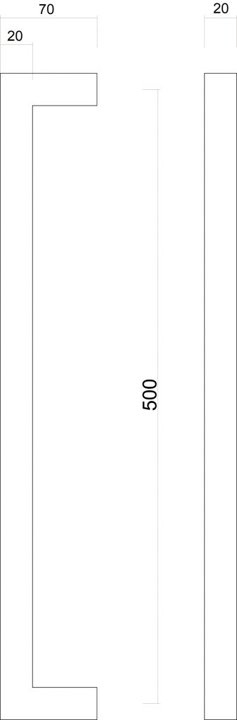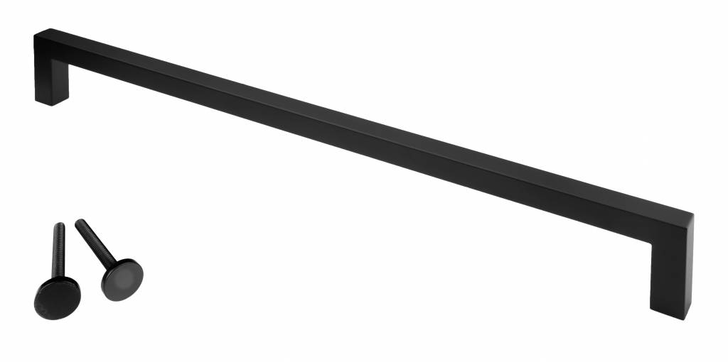Black square Cubica door handle with an axle size of 500 mm and through-and-through mounting