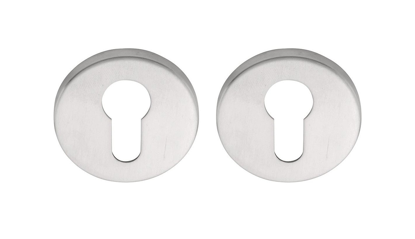 The LBY50 cylinder plates are supplied in pairs including a steel bottom rosette, finishing rosette in matt stainless steel and mounting material.