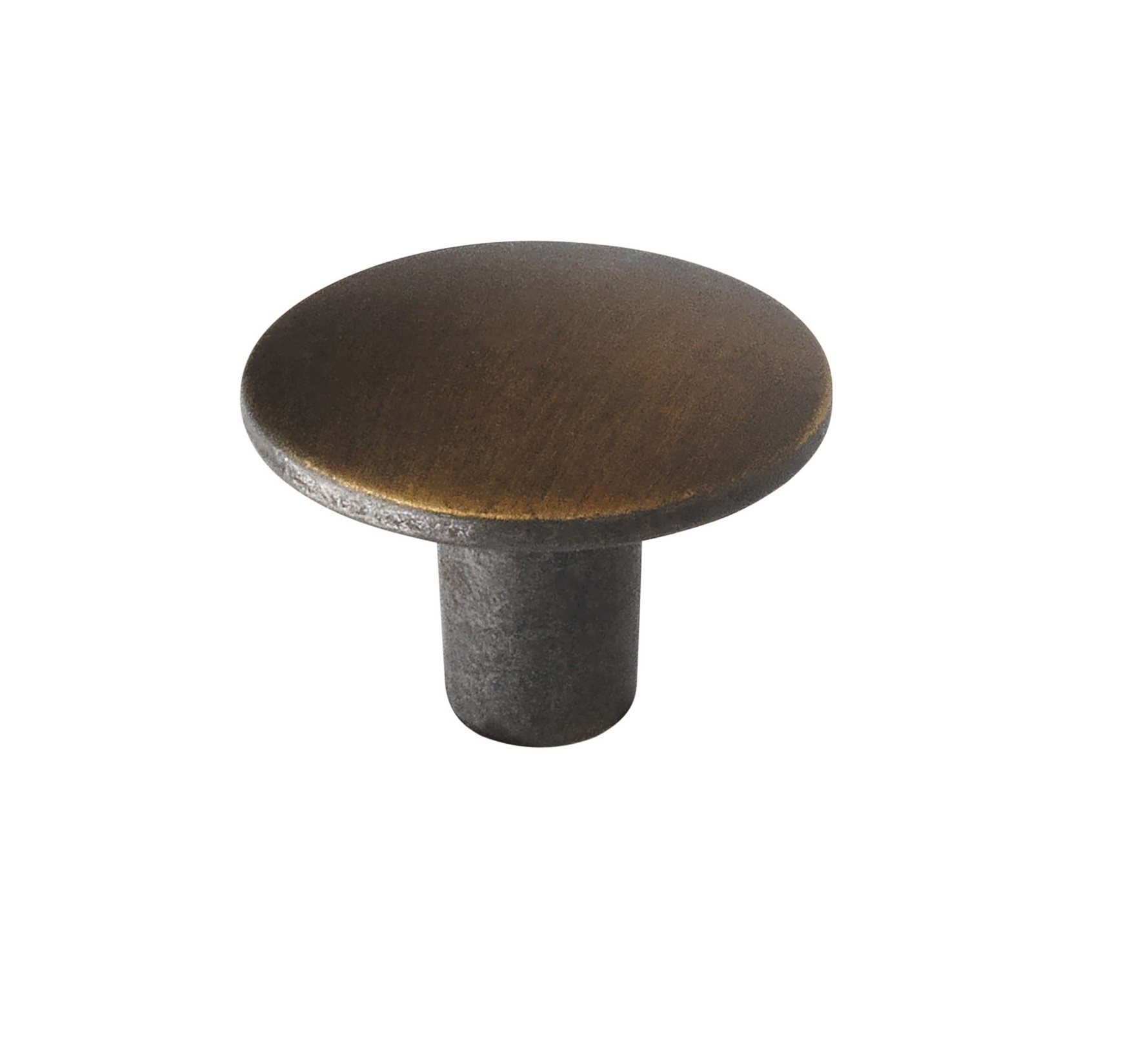 Round furniture knob Ø 30 mm in antique brass brushed with an antique look