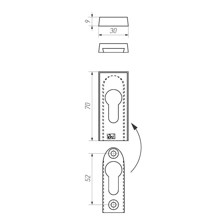 Safety rosette rectangular matt bronze (WBS) 30x68mm