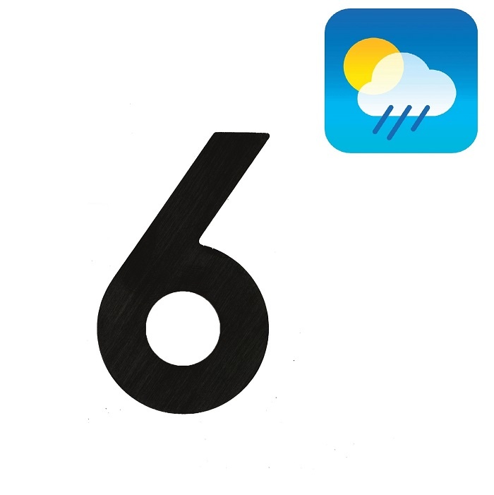 Smaller version of a black flat house number "6" that is self-adhesive with a UV resistant textured lacquer