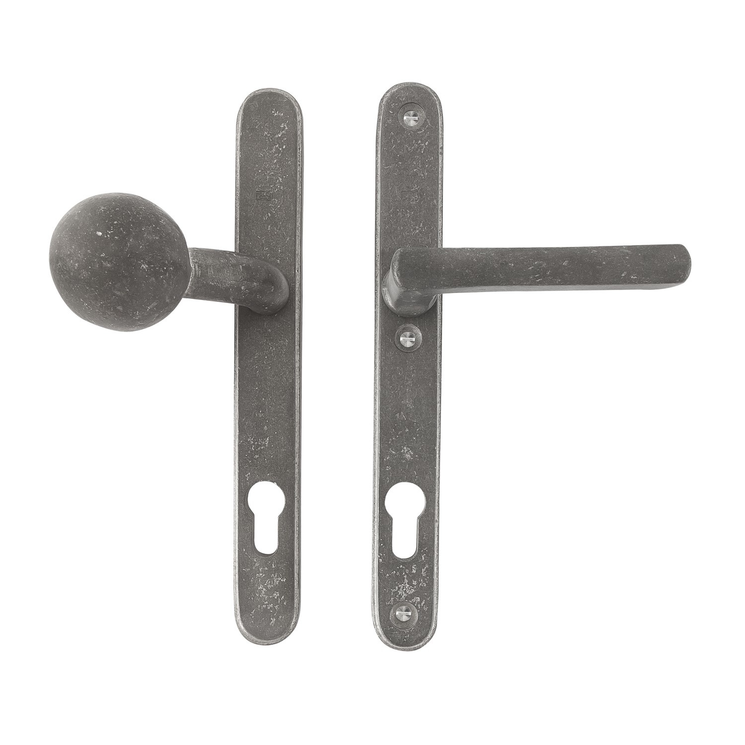 These iron-colored safety fittings are not sprung and are supplied with mounting materials. The national security fittings are suitable for three-point locks.