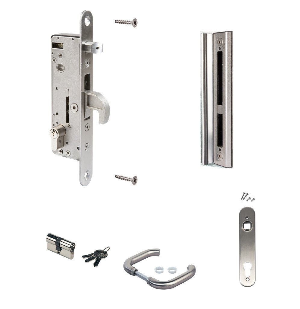 - Complete set with lock, striker, cover plates, handles and cylinder