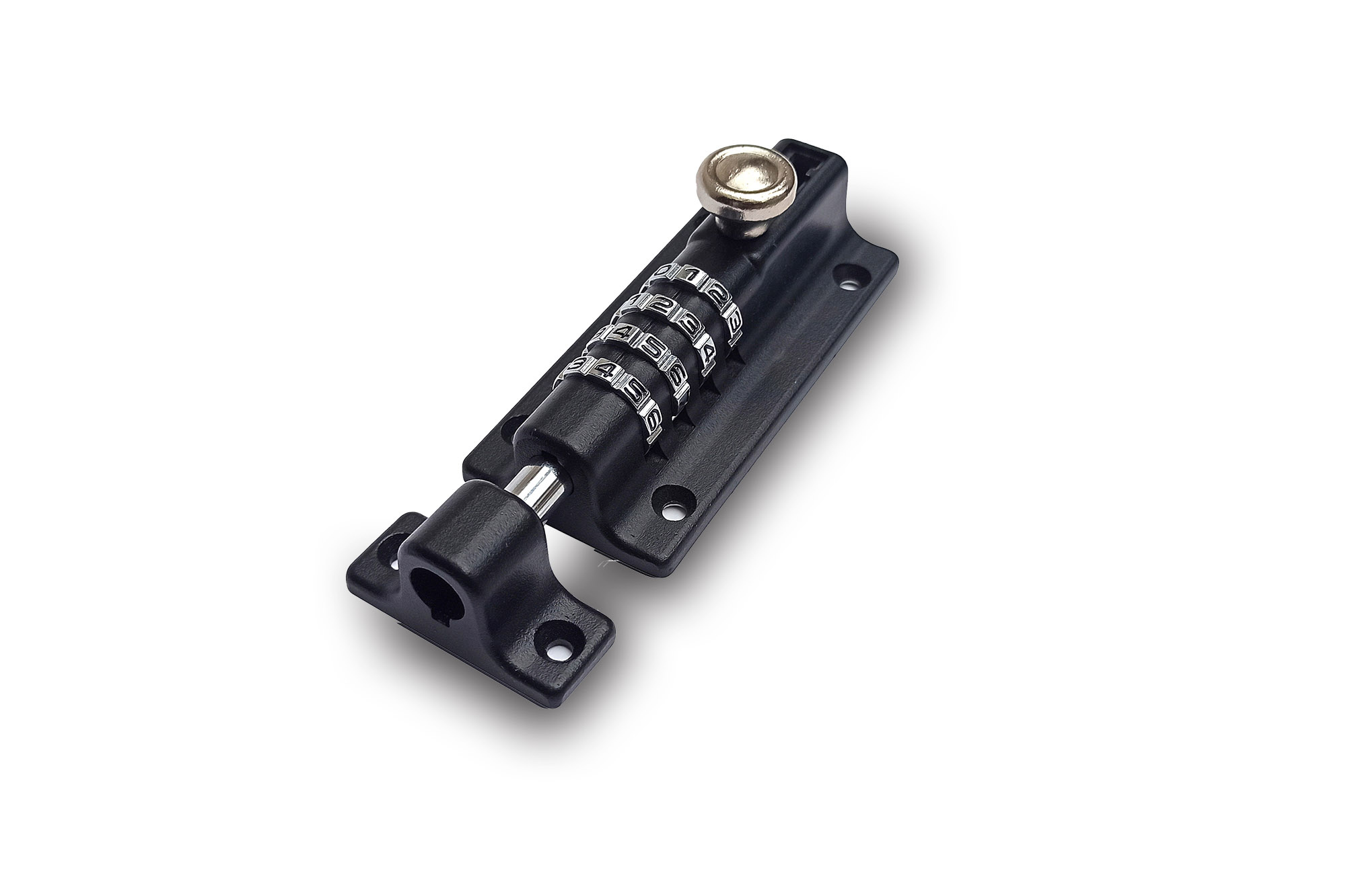 This black painted aluminum sliding bolt with combination lock is ideal for use in and around the
