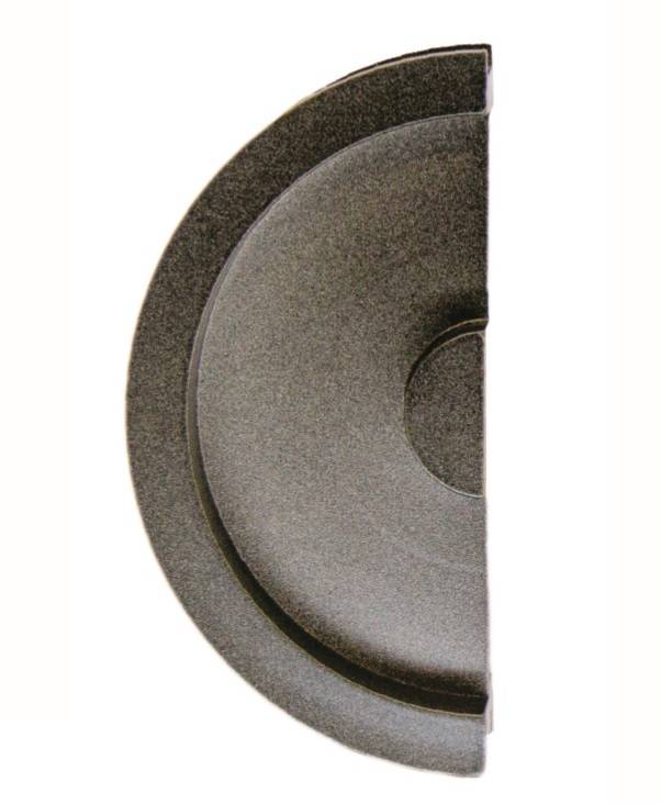 Solid stainless steel plus sliding door bowl half moon in iron look version for a wooden sliding door.