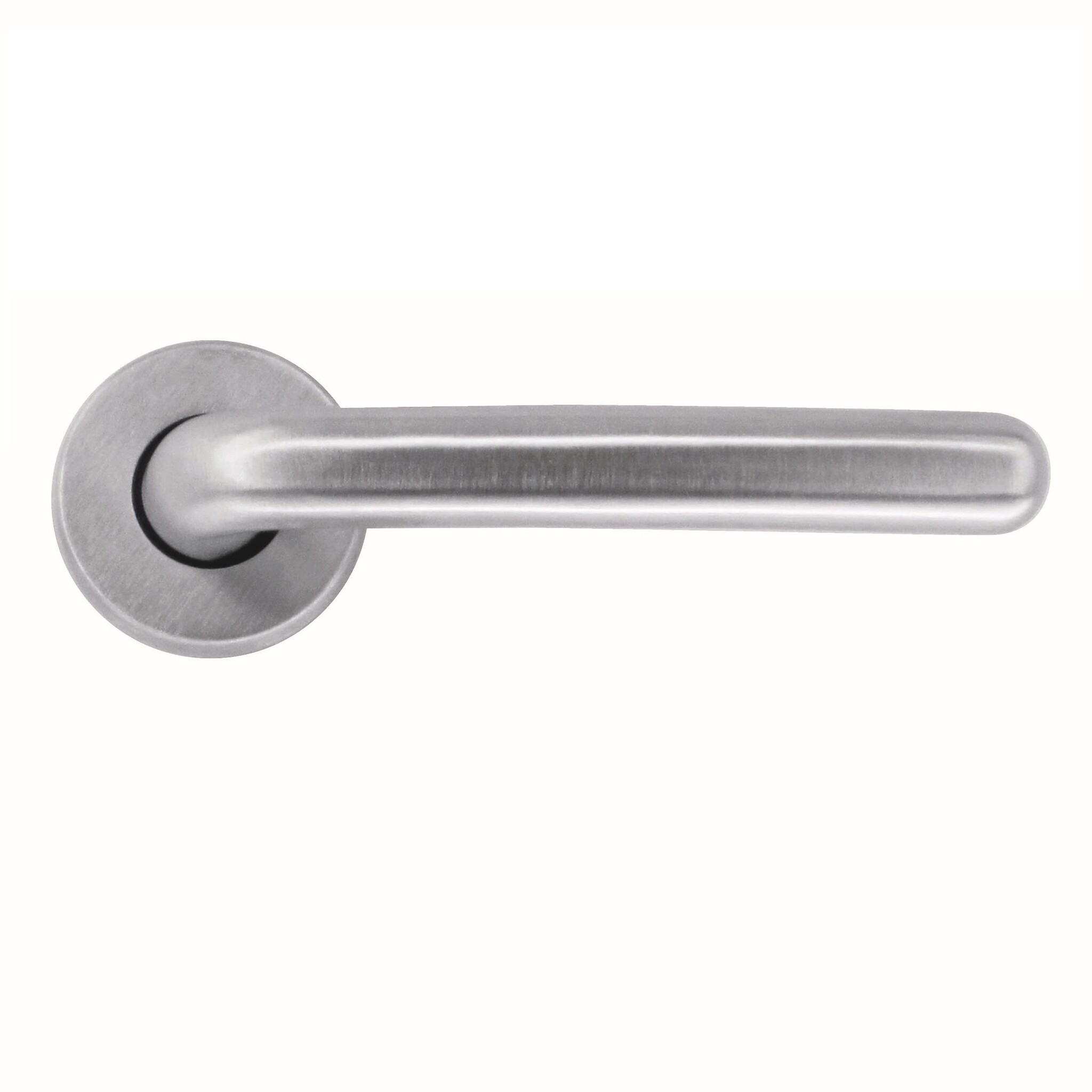'Tatiana' door handles made of solid brass are chromed and brushed. The door handles are on a round rosette with a diameter of 44mm.