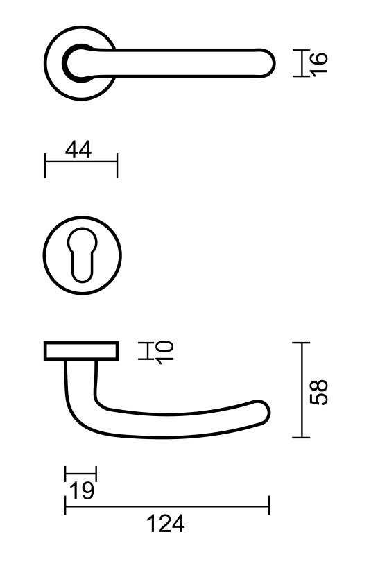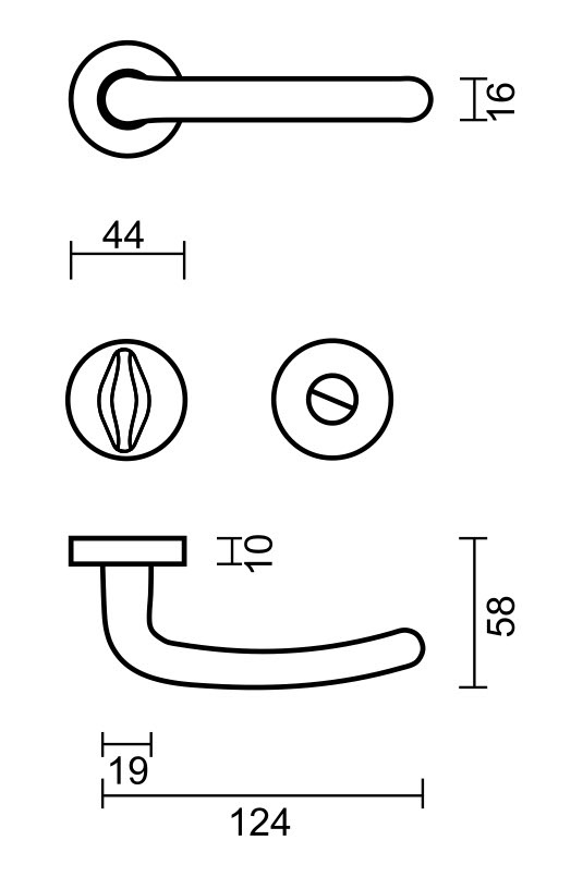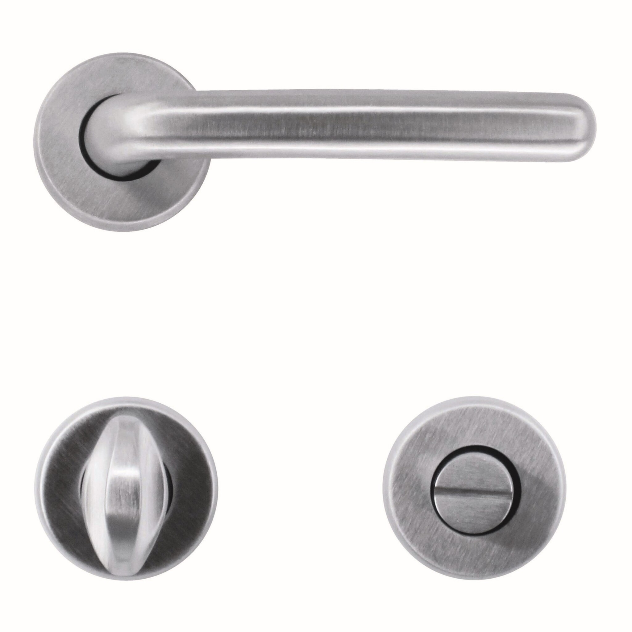 These door handles are available in 4 versions: without key plates, with key plates, with cylinder plates and with WC set. Make your choice in the scroll menu at the top right .