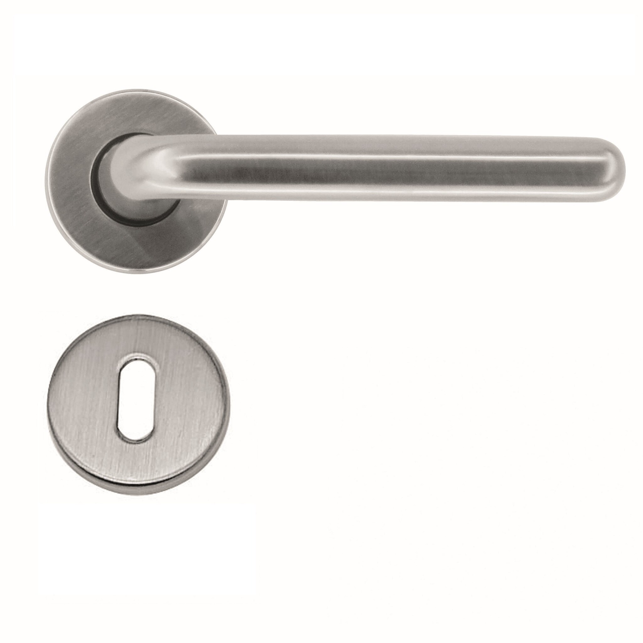 These door handles are available in 4 versions: without key plates, with key plates, with cylinder plates and with WC set. Make your choice in the scroll menu at the top right .