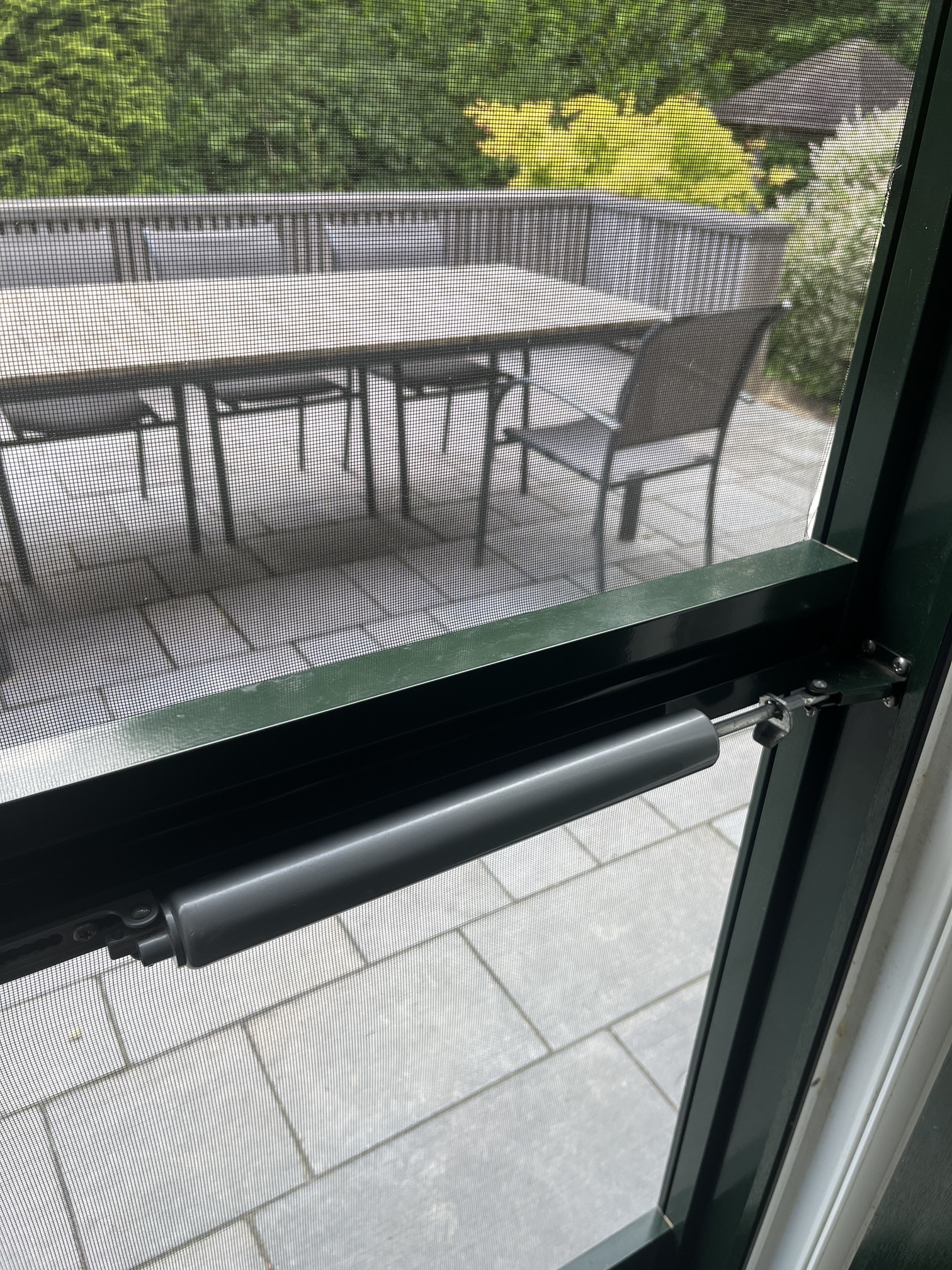This silver-gray door spring that closes pneumatically is perfectly suitable for light doors such as screen doors or fly doors. The closing speed of the door spring is adjustable.