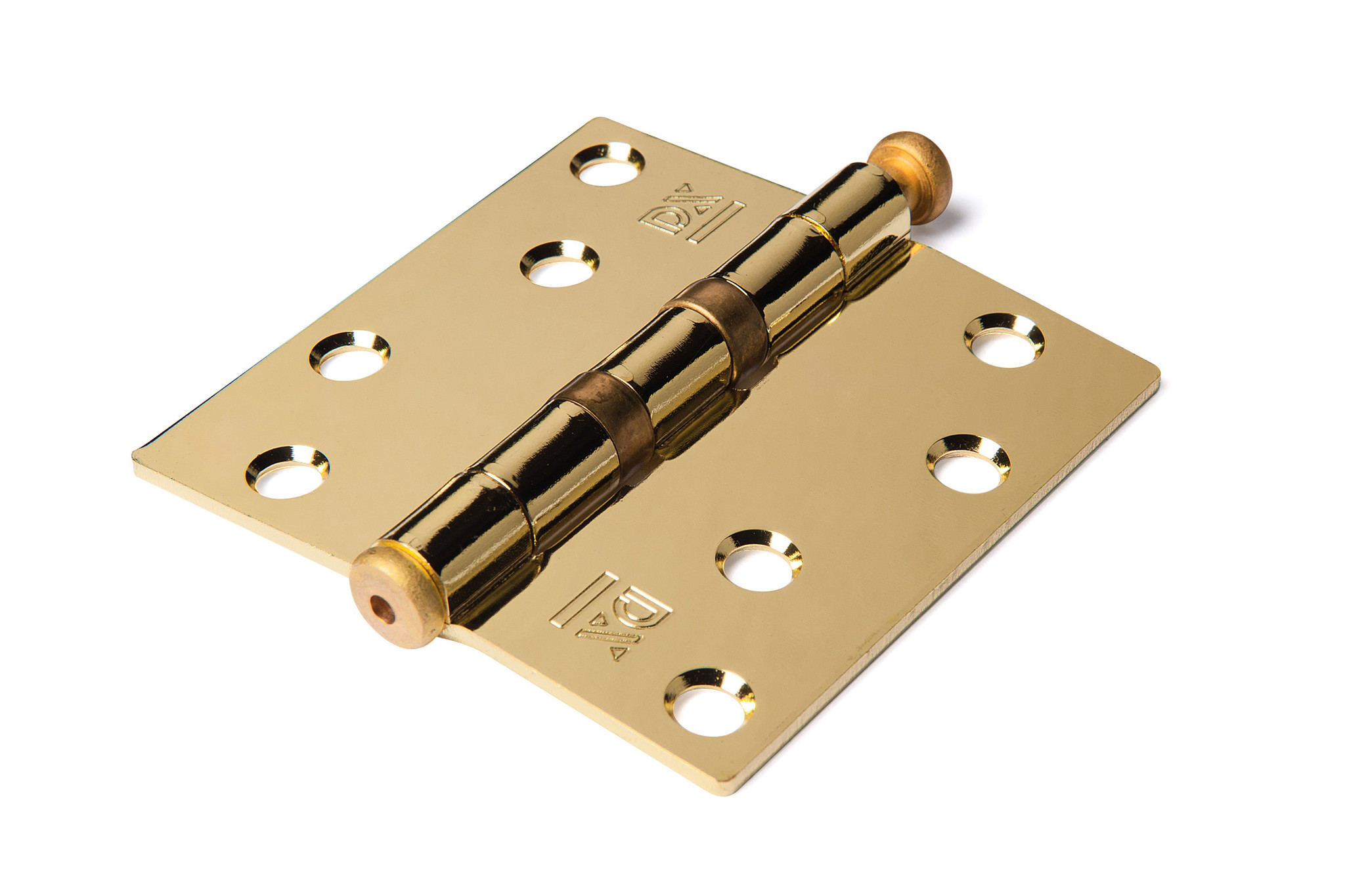 Description Ball bearing hinge with loose pin 89 x 89 x 2.4 mm brass-plated steel - right angles
