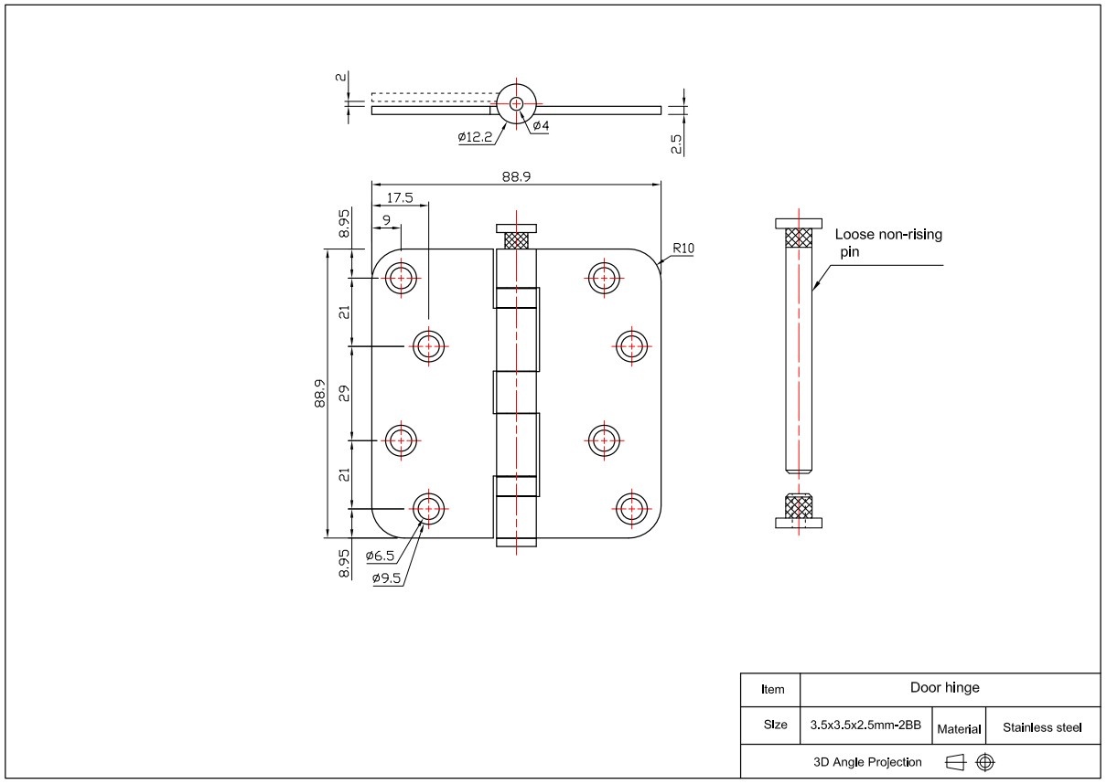 These black ball hinges have the following dimensions: 89x89x2.5mm and are supplied per piece including screws (40mm).