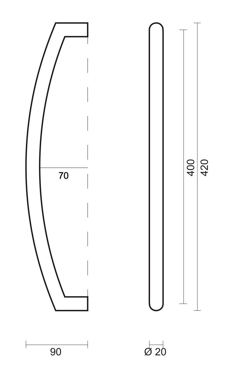 Beautiful slightly curved door handle U-model with a sleek modern look that is also suitable for outdoor use, made of stainless steel for continuous installation