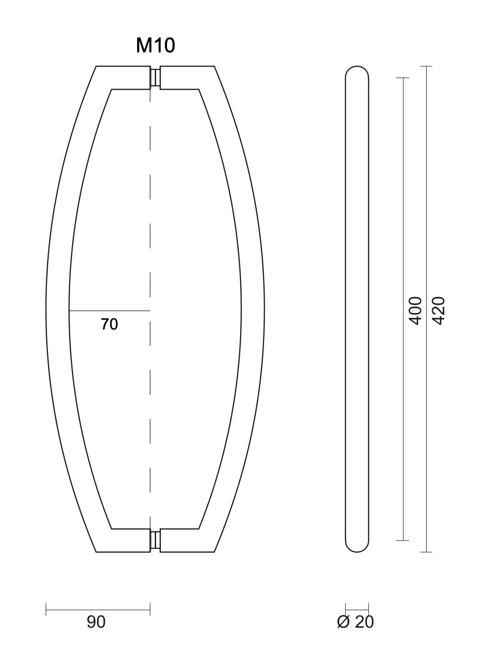 The round modern door handle is supplied individually including the necessary mounting materials. The supplied bolts can be shortened depending on the thickness of your door.