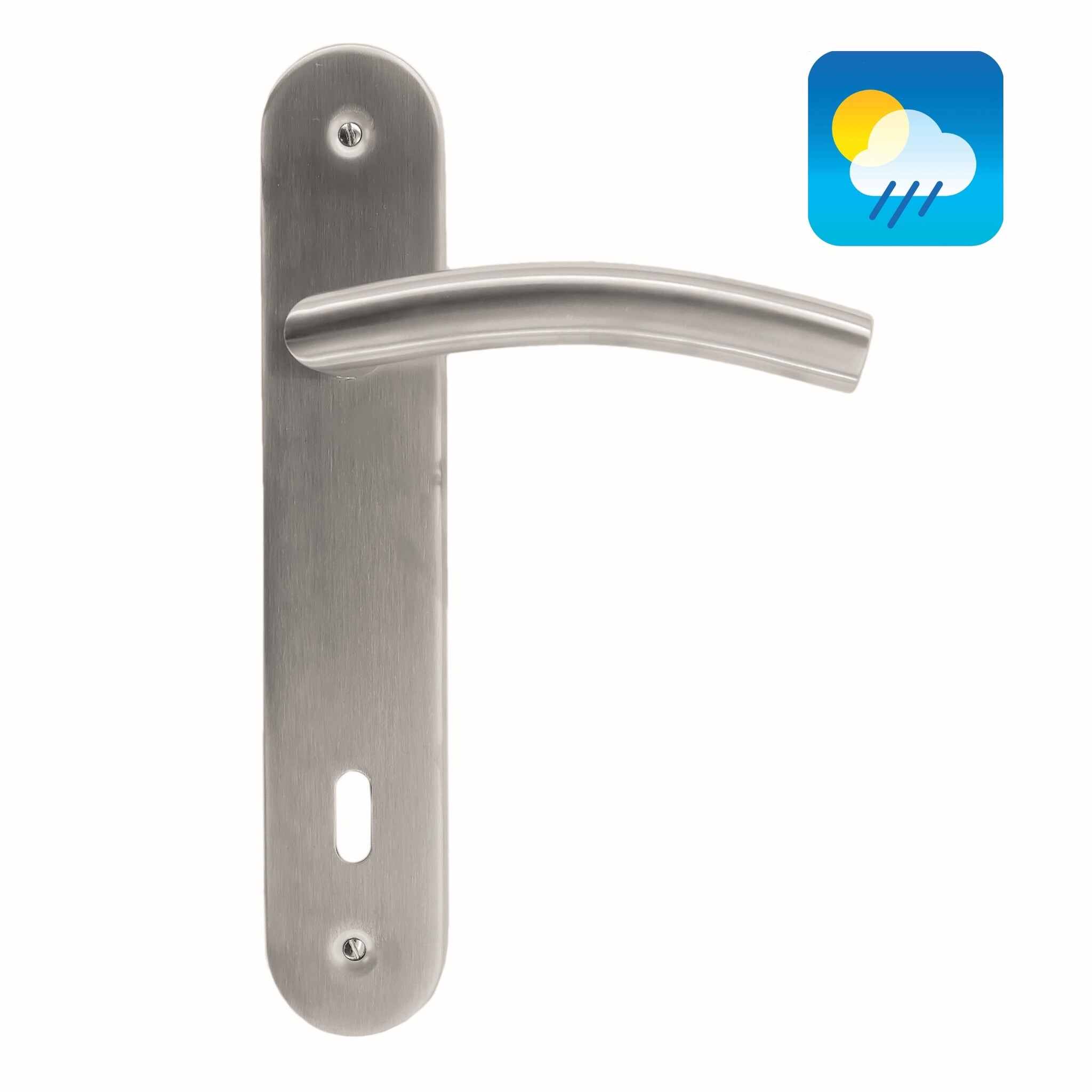The door handles are supplied on a plate per pair with or without key opening and are suitable for both interior and exterior doors.