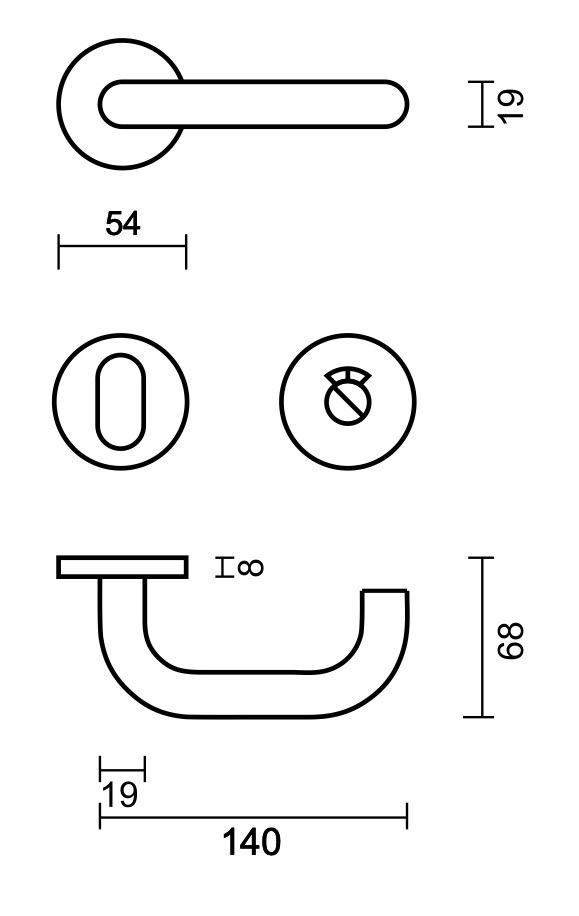 These door handles are available in four versions: without escutcheons, with escutcheons, with cylinder escutcheons, and with toilet fittings. Make your choice in the scrolling menu at the top right .