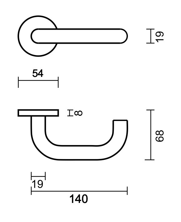 Stainless steel door handles "Zero U shape" 19 mm available in 4 variants