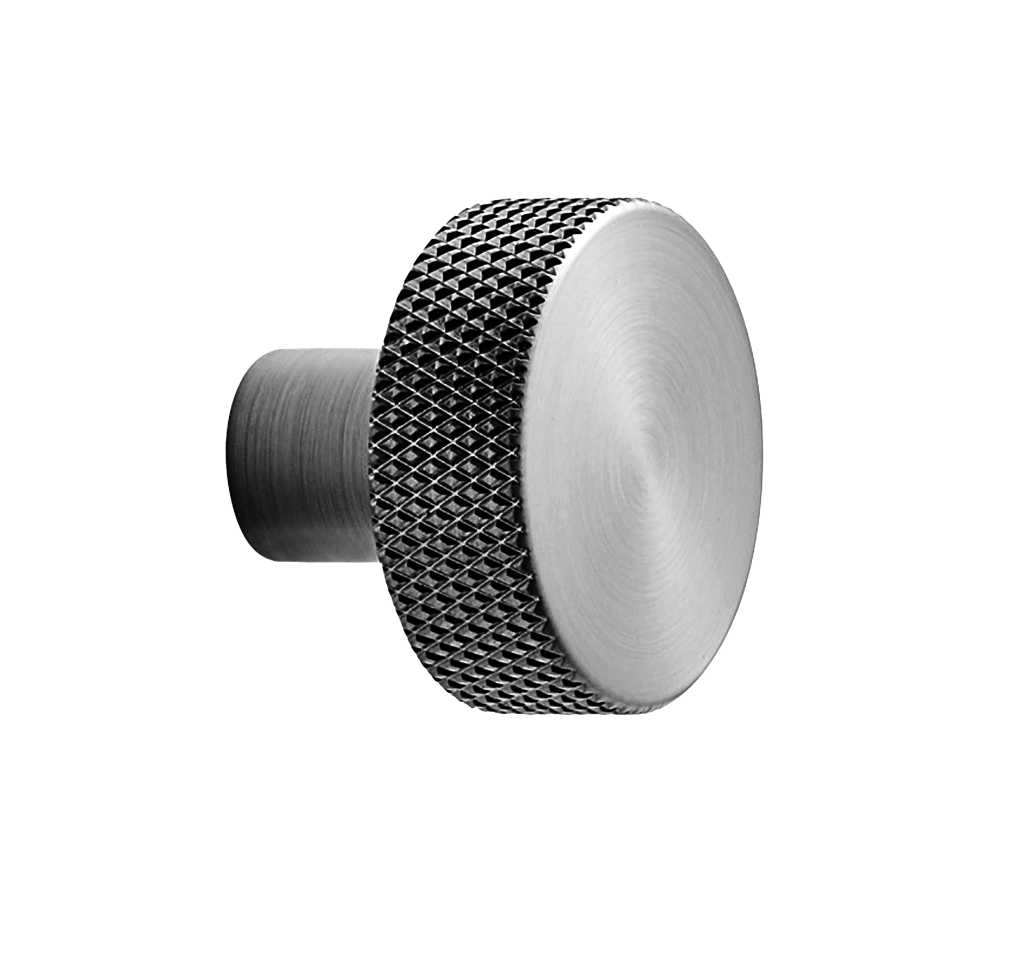 This round furniture knob is made of steel to which an INOX look coating is applied.