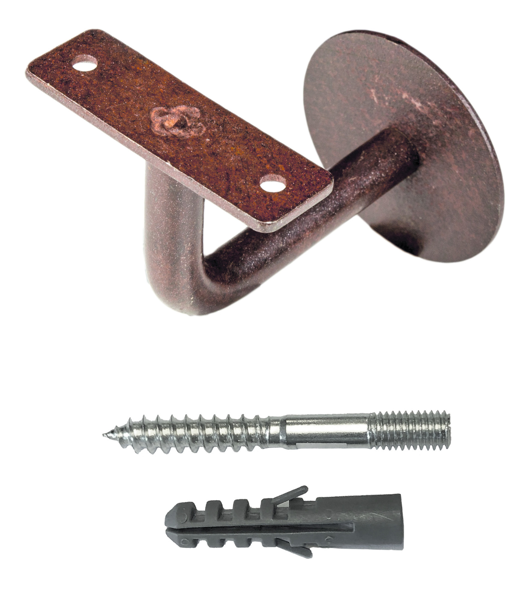These rust-colored handrail holders can be mounted invisibly with the supplied plug and screw.