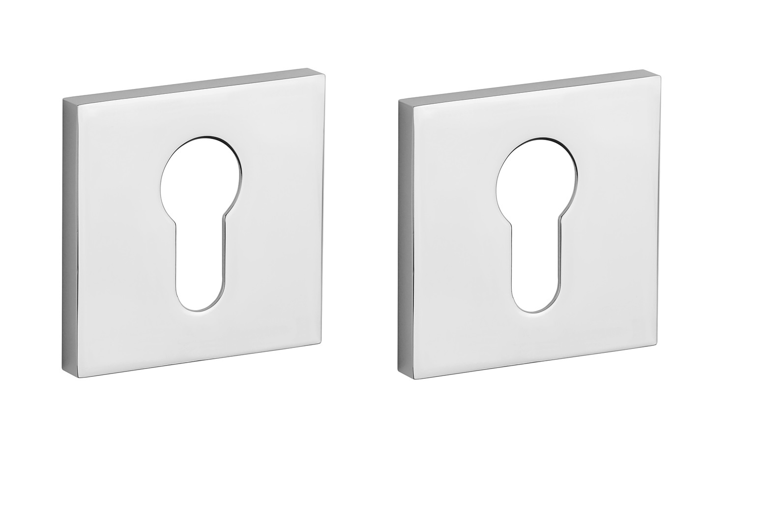 The square polished cylinder rosettes of 53x53x7 mm are supplied in pairs and are designed for interior doors with a maximum thickness of 44 mm.