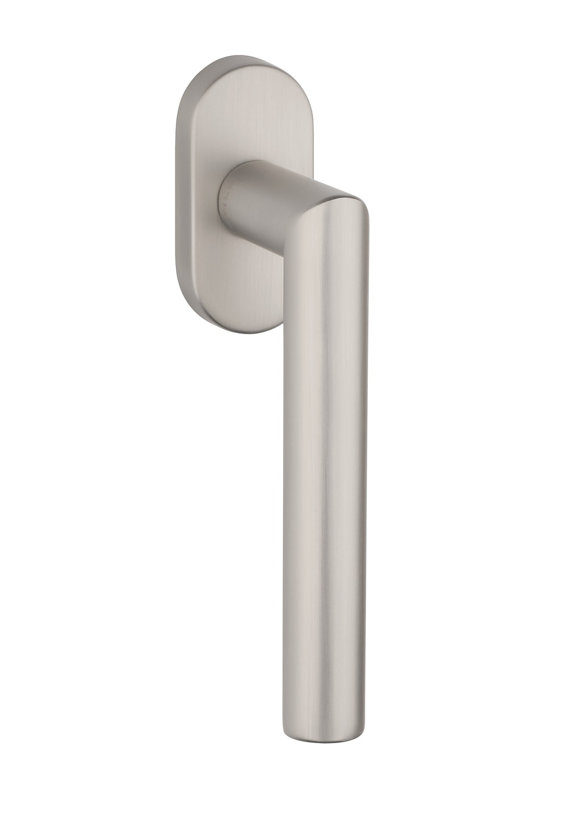This matt nickel window handle, with the STILE logo, is supplied per piece including mounting materials and pin of 7x7x35 mm. The mounting holes are spaced 43 mm apart