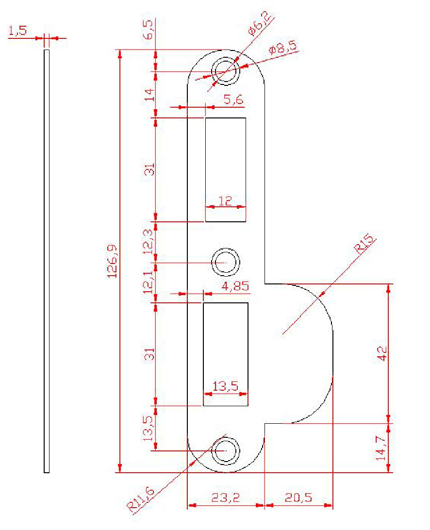Dimensions mm 127 x 23 x 1.2