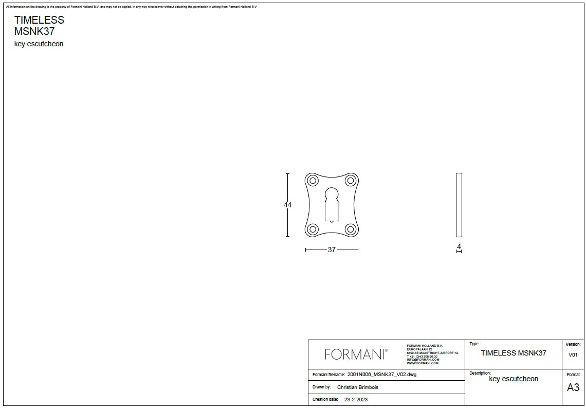 This nickel key plate MSNK37 belongs to the TIMELESS series by Formani, with a refined clover shape in a polished nickel finish.