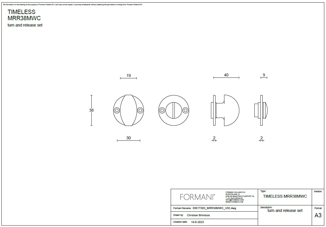 Discover the elegant MRR38MWC toilet set from Formani's TIMELESS collection, crafted from unlacquered brass. This set, mounted on a round escutcheon , comes with Q5/6/7/8mm square pins.