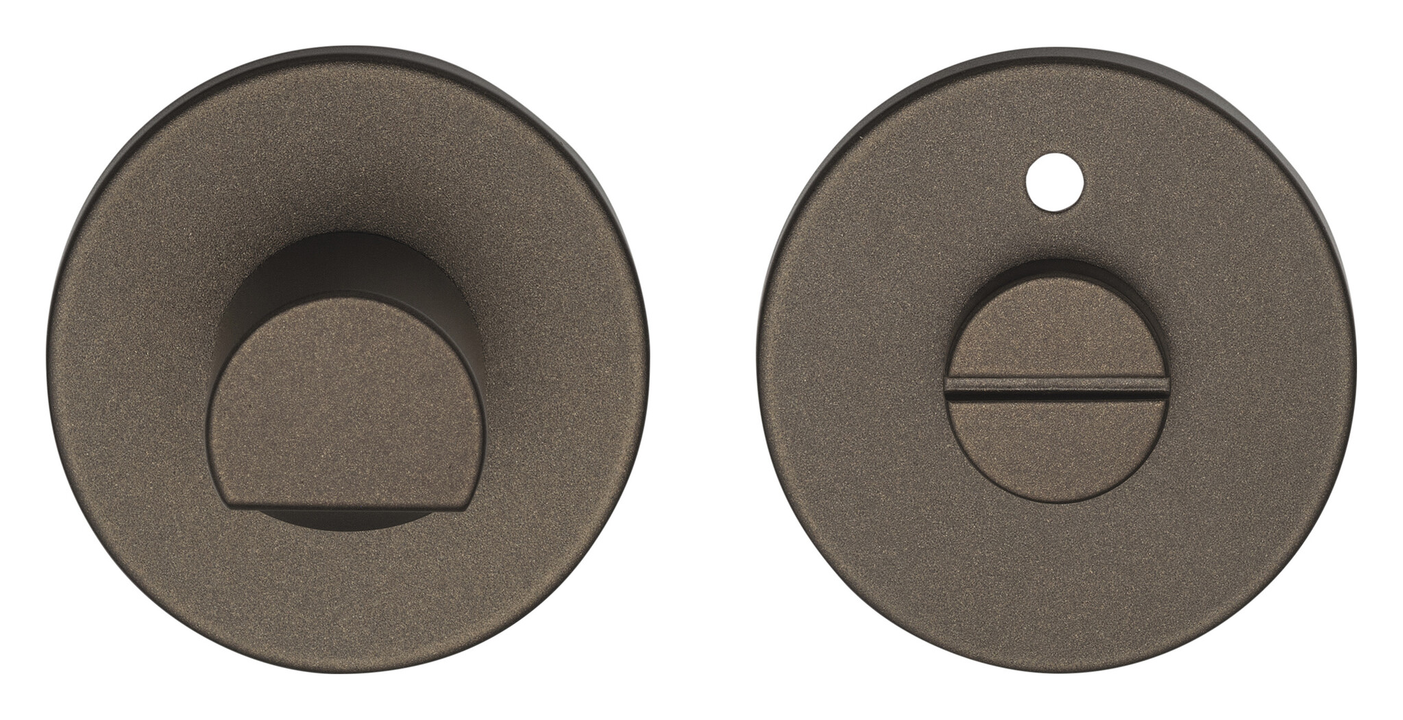 The stainless steel toilet set is provided with a bronze finish at the end. The plates have a diameter of 53 mm and are only 6.5 mm thick.