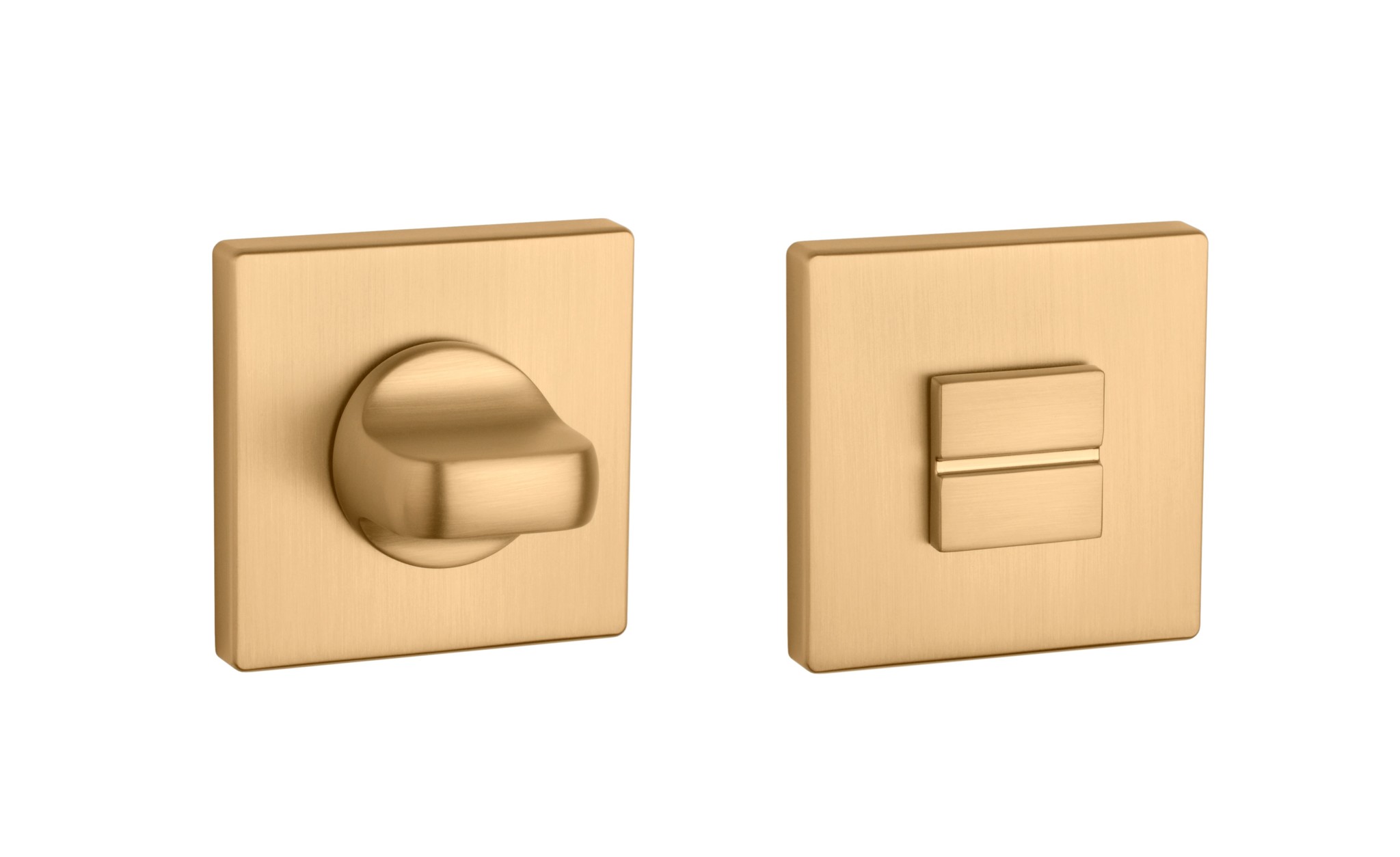 This toilet fitting in matt gold has square rosettes of 52x52mm with a thickness of only 5mm, making them look very attractive.