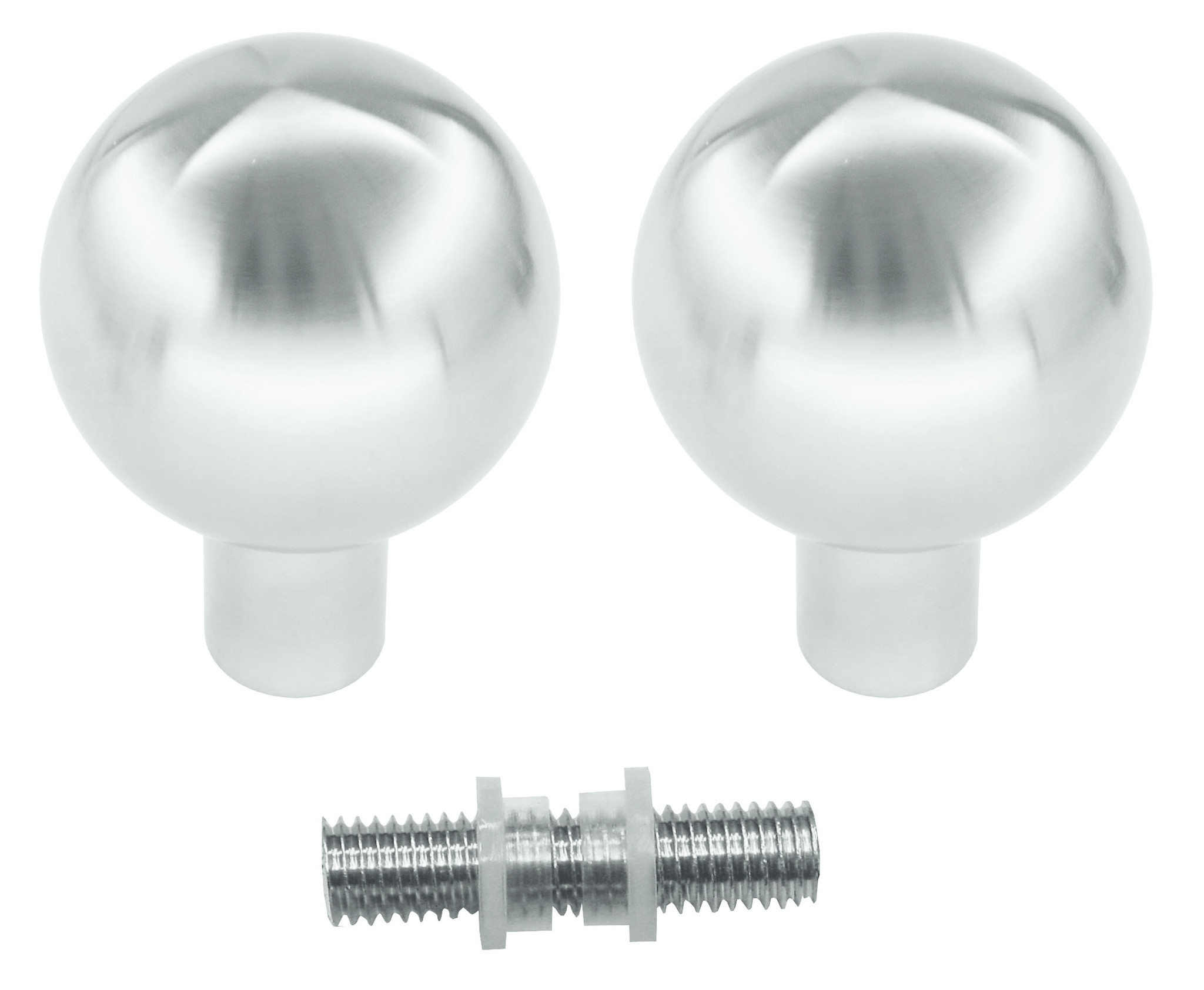 Pair of fixed door knobs B50 in solid stainless steel for glass doors
