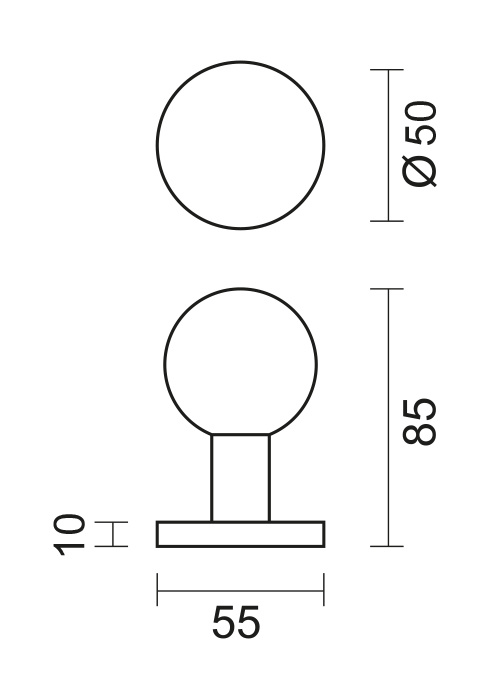 This fixed doorknob "B50" is made of solid stainless steel and is therefore suitable for outside use. It is a spherical knob with a Ø of 50mm on a rosette that protrudes 10mm. In total, this button comes forward 85mm.