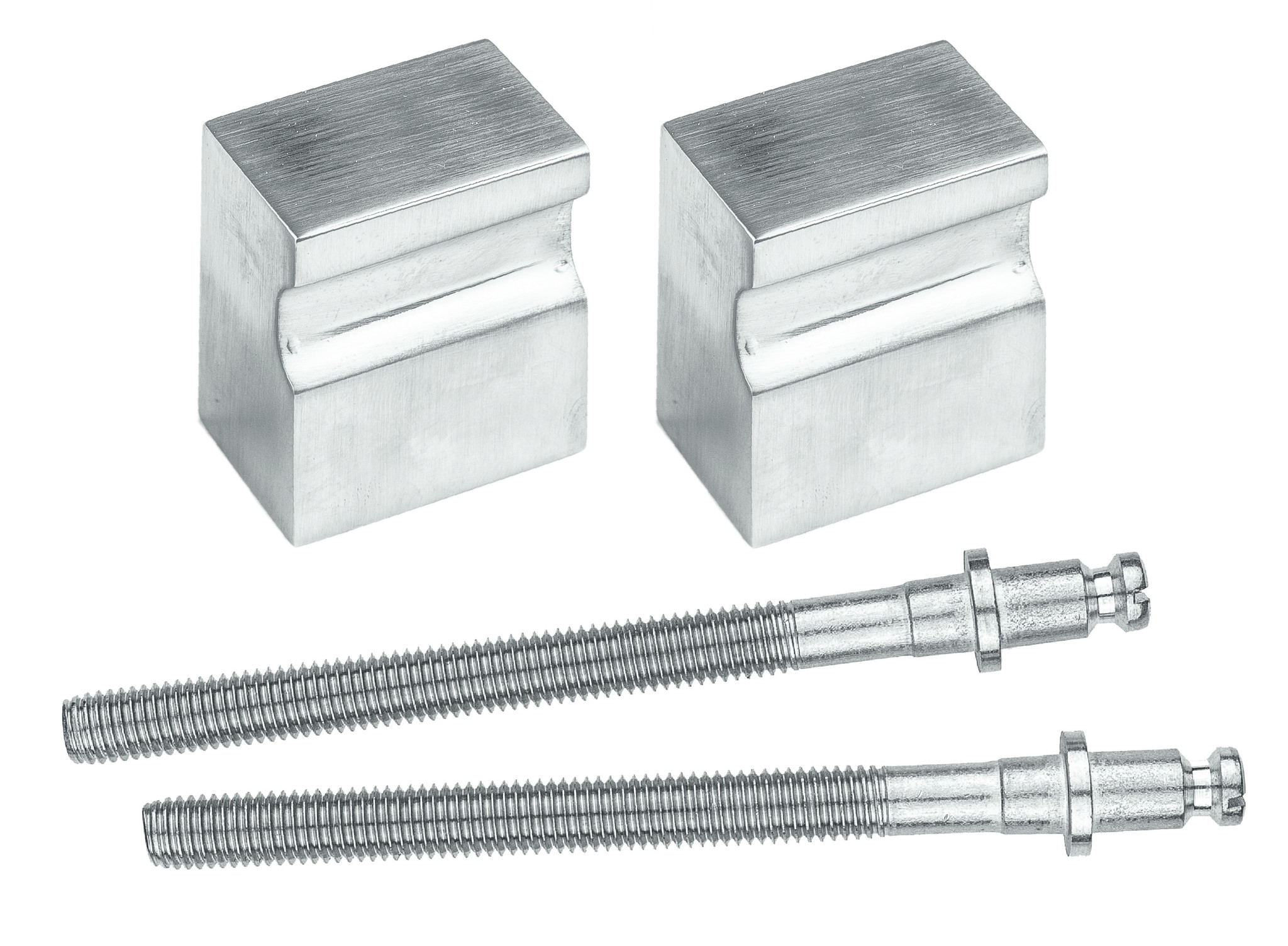 These stainless steel look door knobs can be attached with the two supplied bolts. The two mounting holes Ø 10mm are spaced 20mm apart.