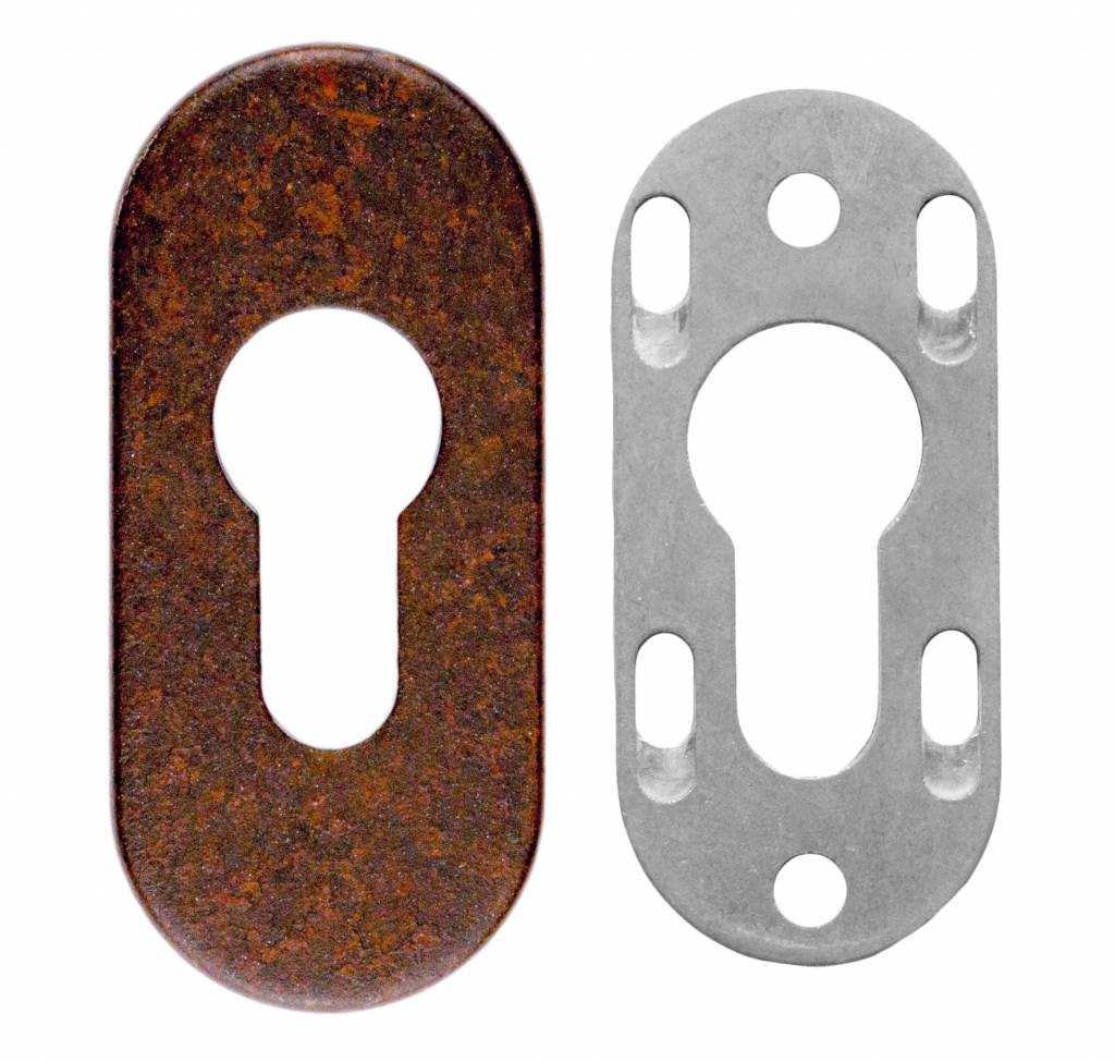 VEILIGHEIDSCYLINDER PLAATJE OVAAL ROEST 6MM