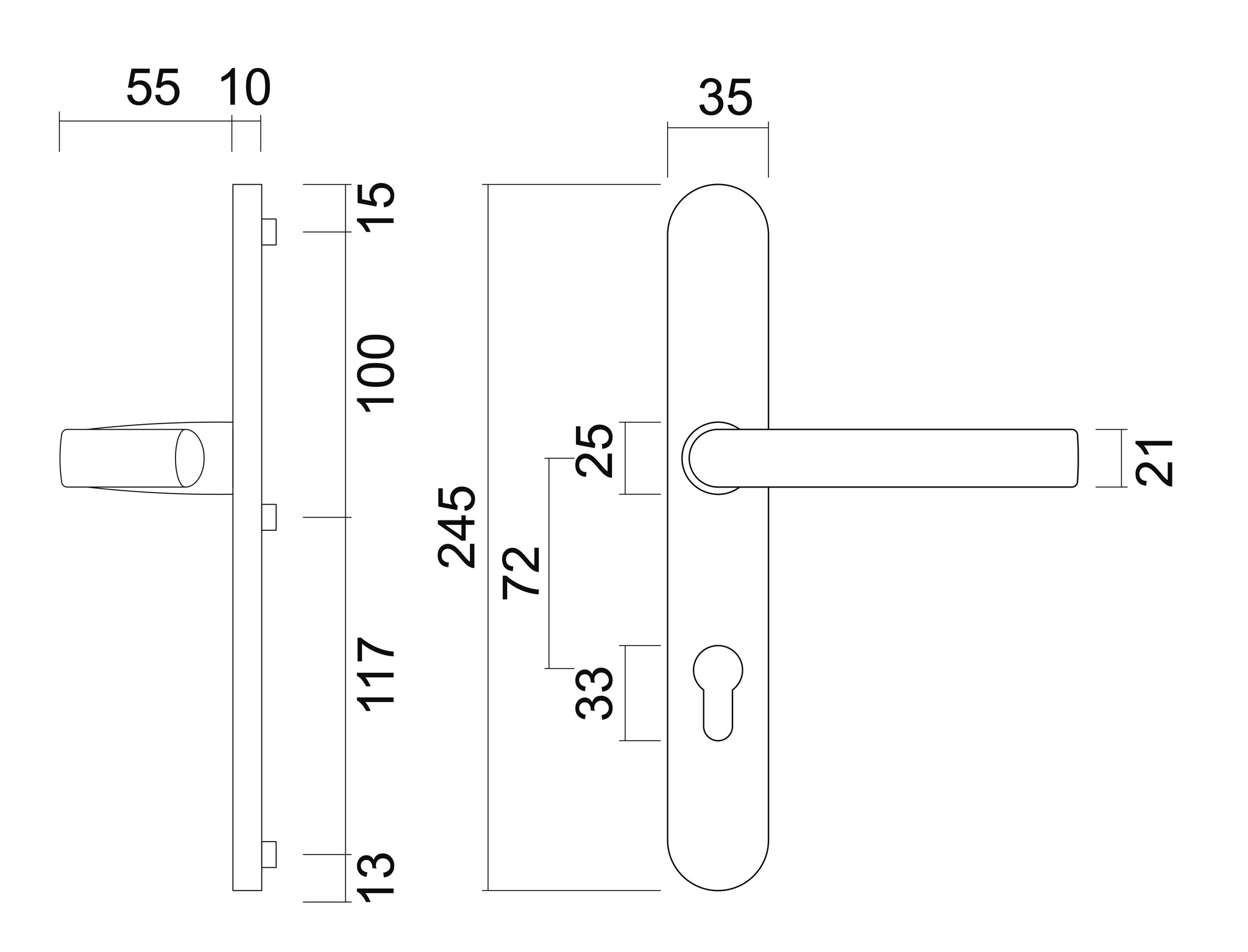 2 pins are included (120 mm and 135 mm, 8x8mm), so that the safety fitting can be used for all door types.