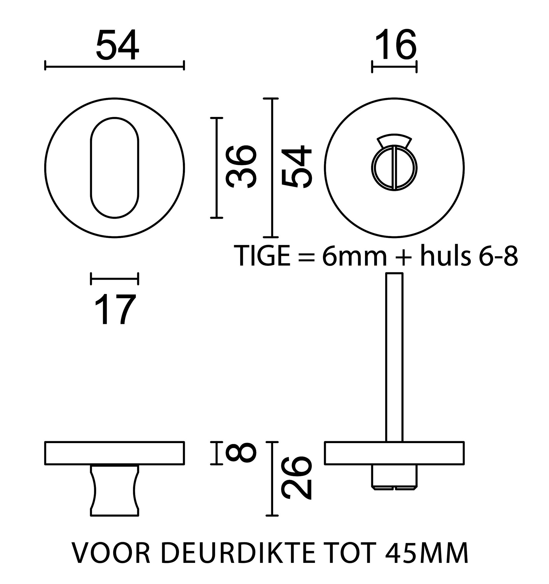This toilet set is suitable for standard door thicknesses of 35–45 mm and is also available in a version for thicker doors up to 80 mm , ensuring there is always a suitable solution for your door.
