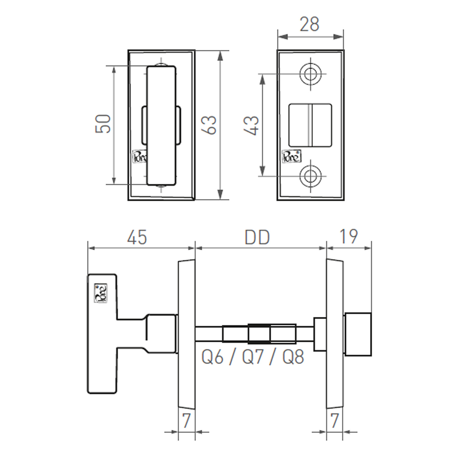 This rectangular toilet fitting is suitable for interior doors from 38 - 60 mm. If you need a thicker door thickness, please state your door thickness.