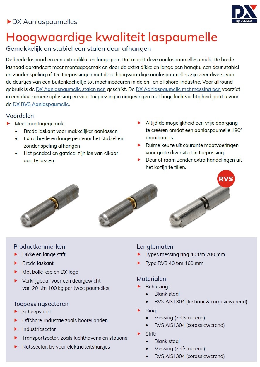 This steel welding hinge with grease nipple ensures a long-lasting smooth operation. Although a brass ring is used around the steel pin, which has a self-lubricating effect and protects the steel, it is advisable for heavy doors to use a hinge with grease nipple in dusty environments.