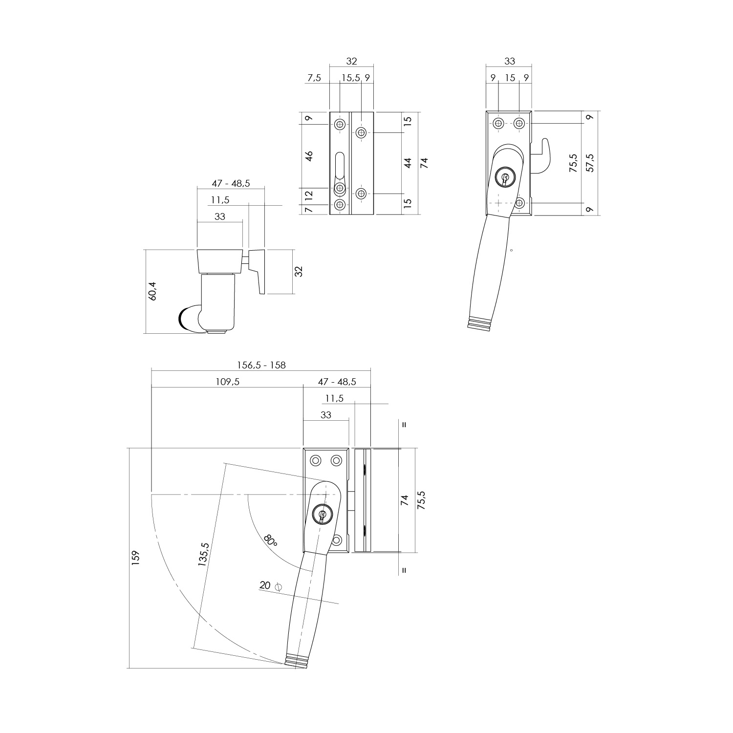 This left mat Nickel window closure is supplied per piece including the corresponding closing plate, mounting materials and key.
