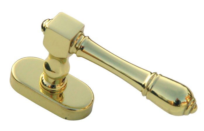 This rustic model gold window handle in a tilt and turn version (DK stands for tilt and turn) has an L-shaped handle.