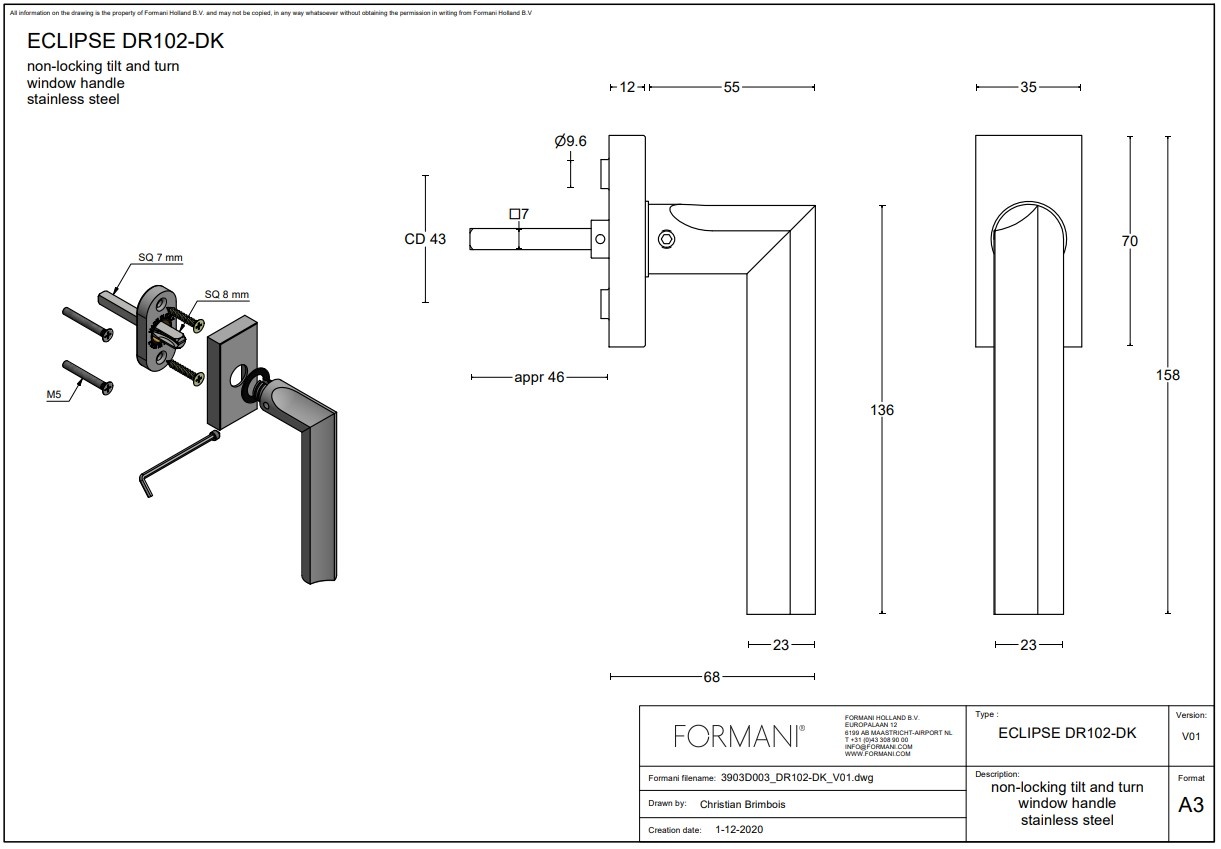 This matt gold window handle DR102-DK belongs to Formani's exclusive ECLIPSE collection.